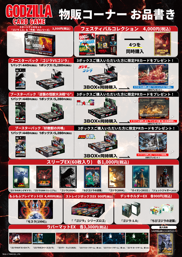 「ゴジラ カードゲーム」の公式イベントでは、「ゴジラ」関連の公式サプライ・無地のサプライの使用を推奨しております。